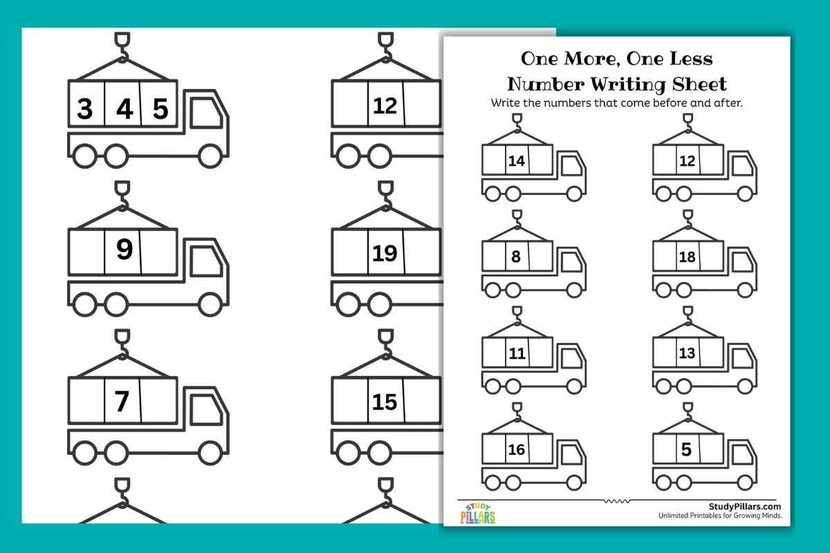 One More One Less Number Worksheet – Fun Early Math Activity for Kids (Printable PDF)